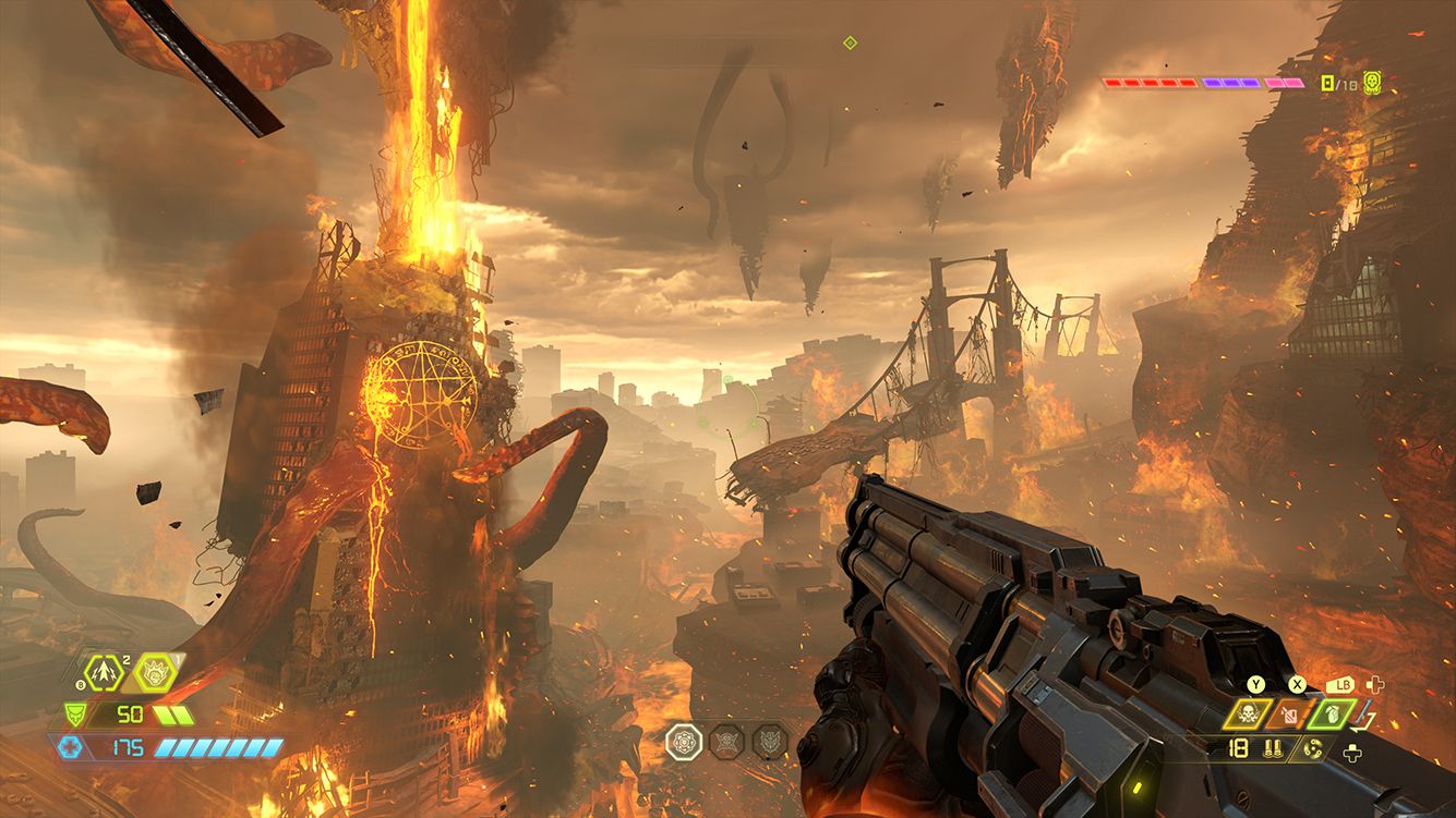 После пары часов игры Doom Eternal начинаешь воспринимать уже не как обычный шутер, а скорее как динамичные, злые, кровавые шахматы. Ведь каждый бой — это головоломка со множеством модификаторов, которую можно решить лишь при правильном подборе оружия, использования умений и своевременном отступлении. И решать эту головоломку нужно на лету. Игрок всегда находится на грани поражения, кажется, что еще чуть-чуть — и все! В итоге нервный азарт испытают даже те, кто будет просто наблюдать за сражением из-за плеча.