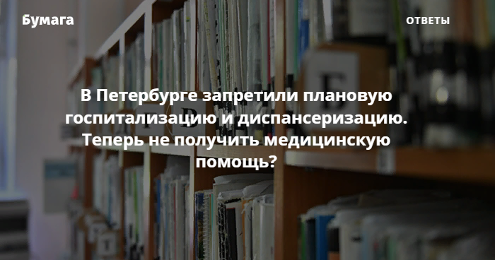 В Петербурге запретили плановую госпитализацию и диспансеризацию. Теперь не получить медицинскую помощь? А поликлиники и платные центры будут работать?