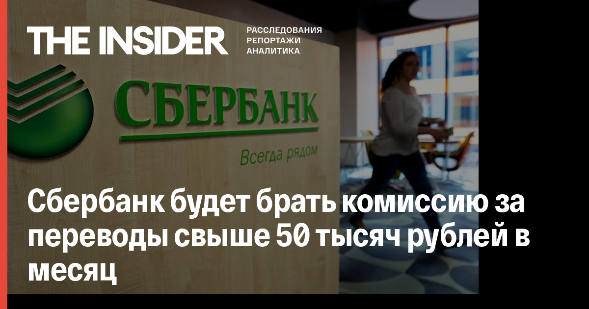 Сбербанк будет брать комиссию за переводы свыше 50 тысяч рублей в месяц