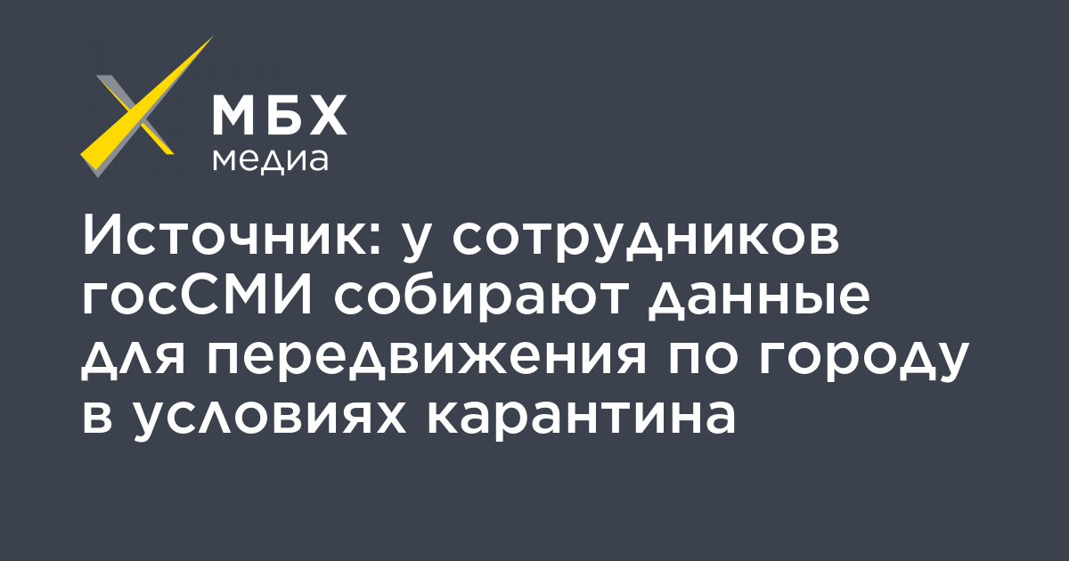 У сотрудников госСМИ собирают данные для передвижения по городу в условиях карантина. Об этом «МБХ медиа» стало известно от источника в одной из федеральных телекомпаний.