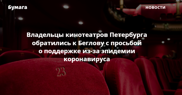 Владельцы кинотеатров Петербурга обратились к Беглову с просьбой о поддержке из-за эпидемии коронавируса