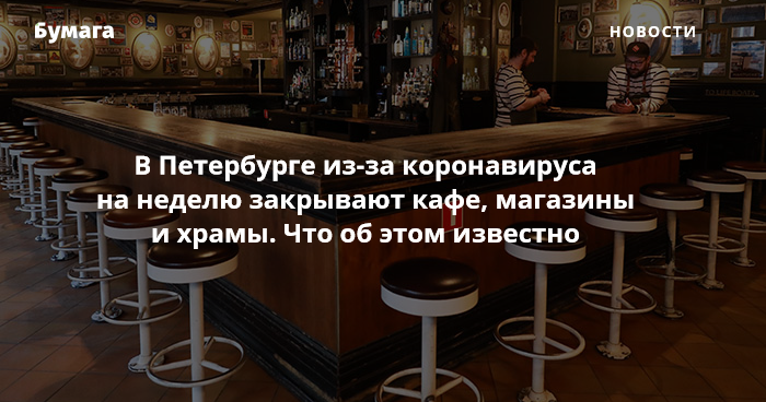Из-за угрозы распространения коронавируса петербургские власти временно закрывают заведения общепита, развлекательные комплексы, церкви и магазины. Ограничения ввели на время нерабочей недели, о которой в обращении к россиянам объявил Владимир Путин.
