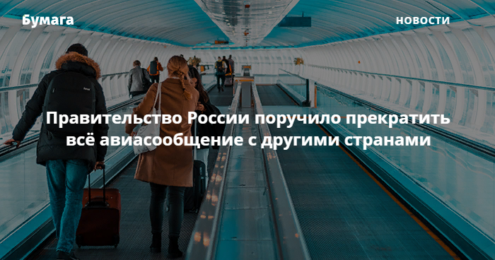 Правительство России поручило прекратить всё авиасообщение с другими странами