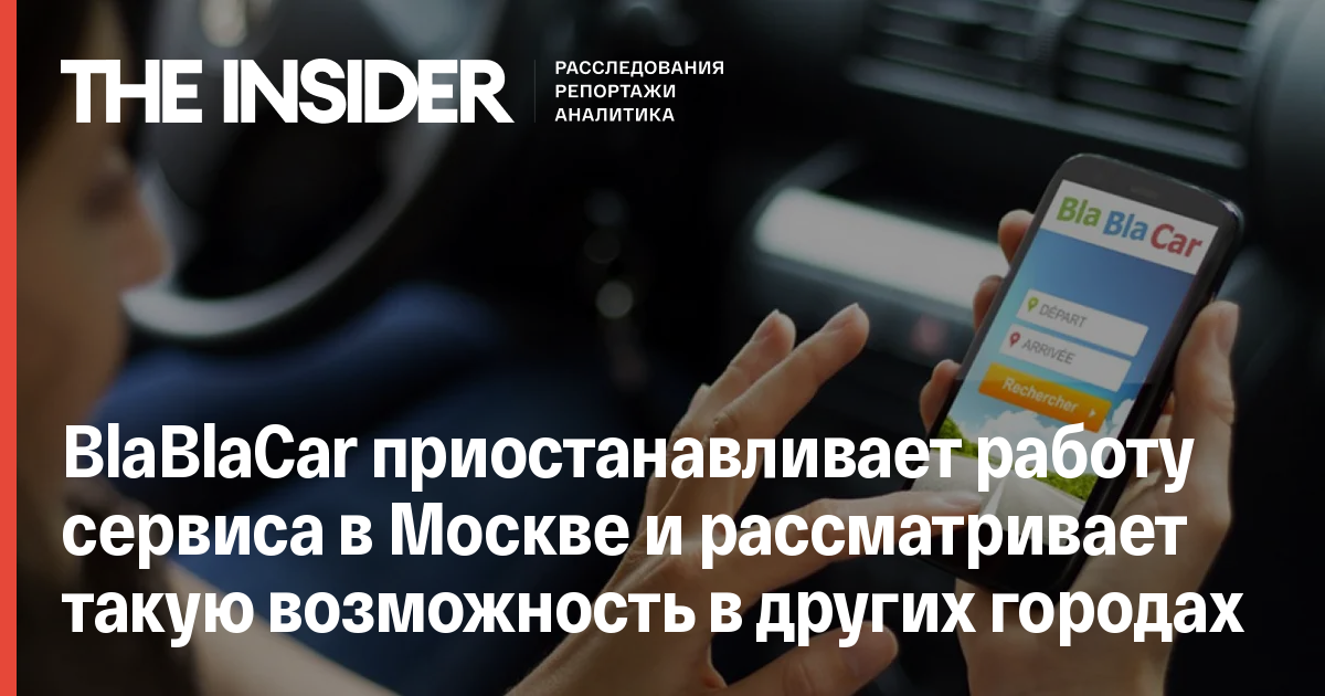 BlaBlaCar приостанавливает работу сервиса в Москве, а также по заявлению региональных властей готов применять приостановку работы и в других городах. Об этом The Insider сообщил PR-менеджер BlaBlaCar Сергей Авакян-Ржевский.