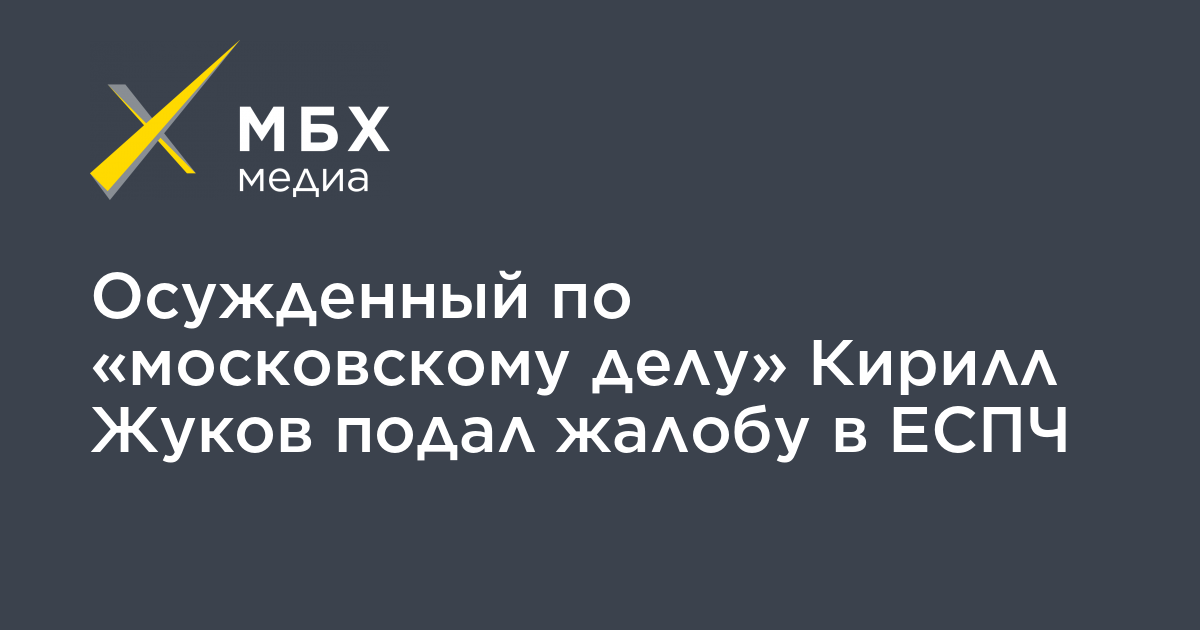 Осужденный по «московскому делу» Кирилл Жуков обратился с жалобой в Европейский суд по правам человека (ЕСПЧ), жалоба была отправлена накануне, сообщила «МБХ медиа» адвокат «Агоры» Светлана Байтурина.
