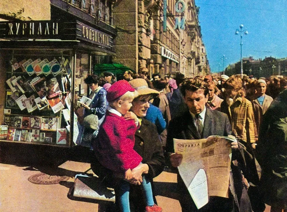 Споры.Не ожидал, что люди так живо начнут откликаться и даже бурно спорить о фото 60-х: вот у Елисеевского стоит мужчина, читает «Ленинградскую правду», рядом жена и ребенок. И что вы думаете? Обсудили все: от «постановочное это фото или нет» до «а что он ищет на последней полосе — спортлото или программку?