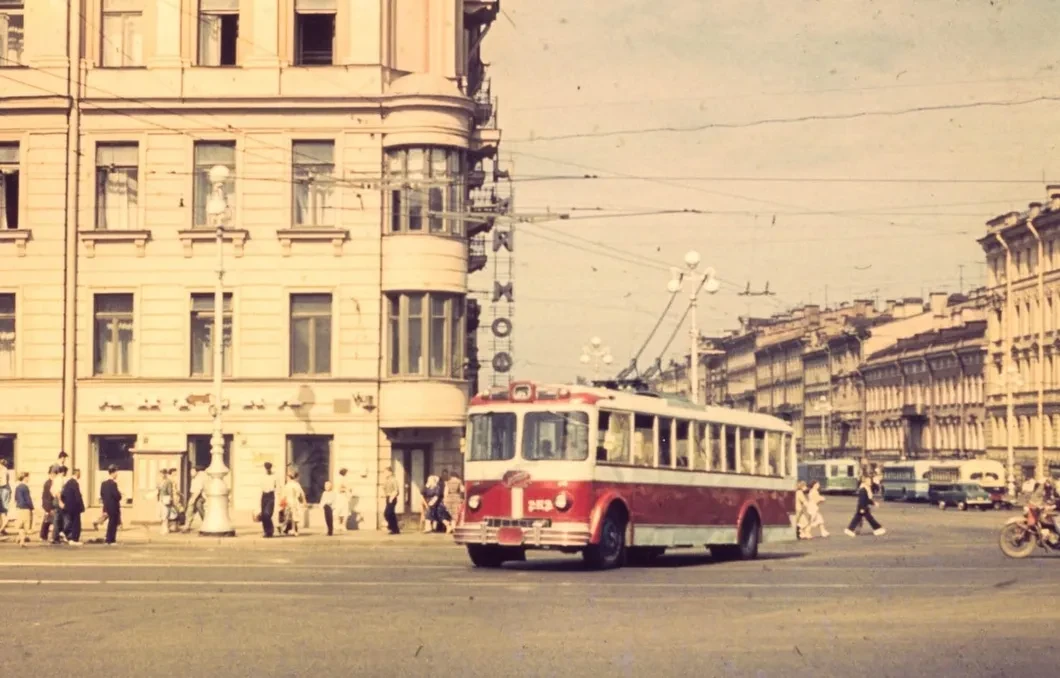 ГАИ.Вот угол Невского и Лиговского, 61-й год. И комментарий: «Видите на здании эркер? Это не квартира. Это был опорный пункт ГАИ. Когда я училась в 8-м классе, мне мама сшила синее (ужасное) пальто, а бабушка подарила жуткую белую шапку. Во всем этом я ходила в музыкальную школу со скрипкой, и это была душевная травма. Передвигаться я старалась быстро, чтобы никто не заметил. И вот на этом самом перекрестке я решила рвануть — побыстрее перейти Невский. Добежала почти до середины... и тут из рупора этой будки дядька гаишник на всю площадь: «Девочка в синем пальто и белой шапке со скрипкой! Вернитесь на тротуар!» И абсолютно все обернулись и посмотрели на меня... Господи! Я чуть не умерла! Ужас-ужас. А сейчас — смешно».