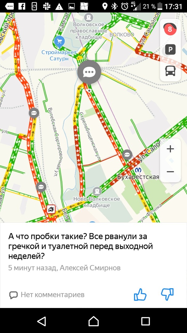 «Бумага» публикует «разговорчики» водителей из приложения «Яндекс.Карты». Они обсуждают коронавирус, ближайшую неделю и шутят про туалетную бумагу и гречку.