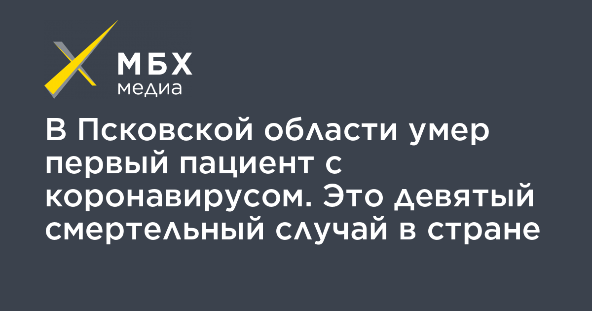 В Псковской области скончался первый пациент с коронавирусом, сообщает региональный оперштаб. Это девятый смертельный случай в стране.