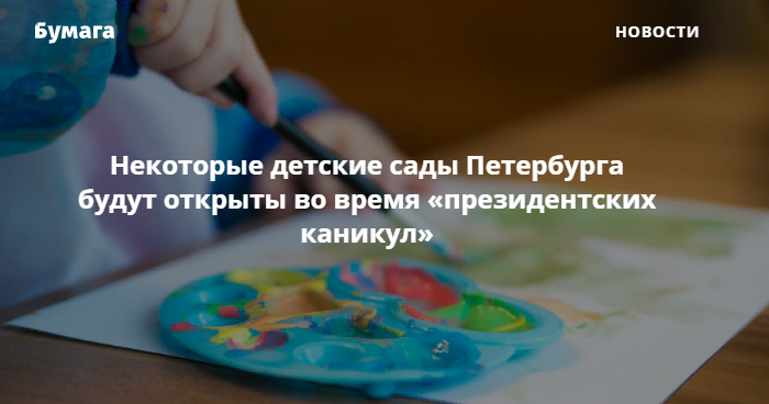 Часть детских садов Петербурга будет открыта во время «президентских каникул»