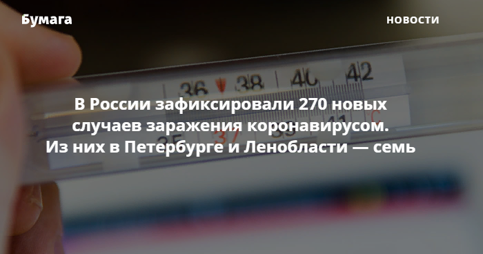 В России зафиксировали 270 новых случаев заражения коронавирусом