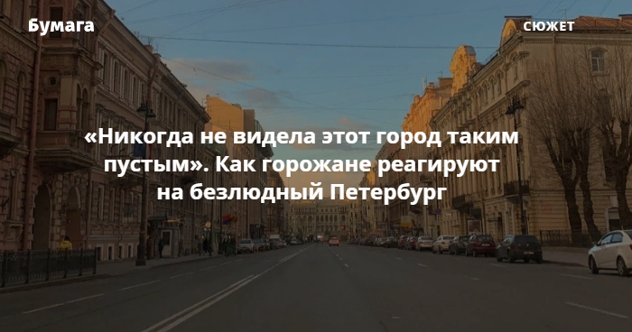 Некоторые не скрывают своего удовольствия от вида пустых петербургских улиц. «Я буду скучать по этому времени, когда всё закончится», — пишет читатель в комментариях «Бумаги». С этим согласны не все. «Ну нафиг такой постапокалипсис», — пишет в ответ еще один читатель. Многих пугают виды безлюдного города. «Такого Питера я еще никогда не видела. Дай бог, чтобы всё это скорее закончилось и не повторялось больше никогда», — пишет в инстаграме svetlana_doobi.