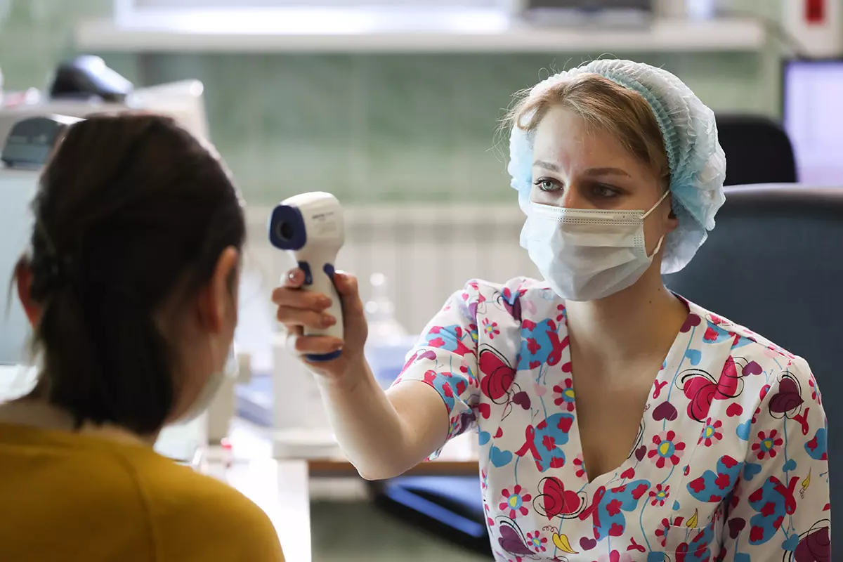 Измерение температуры тела донора крови в отделении переливания крови ГКБ №52 в Москве. Фото: Владимир Гердо / ТАСС