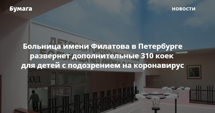 Как рассказывали «Бумаге» в комитете по здравоохранению Петербурга, в детскую больницу имени Филатова направляют детей до четырех лет с подозрением на коронавирус.