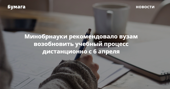 Минобрнауки рекомендовало вузам возобновить учебный процесс дистанционно с 6 апреля. Об этом пишет ТАСС со ссылкой на пресс-службу ведомства.