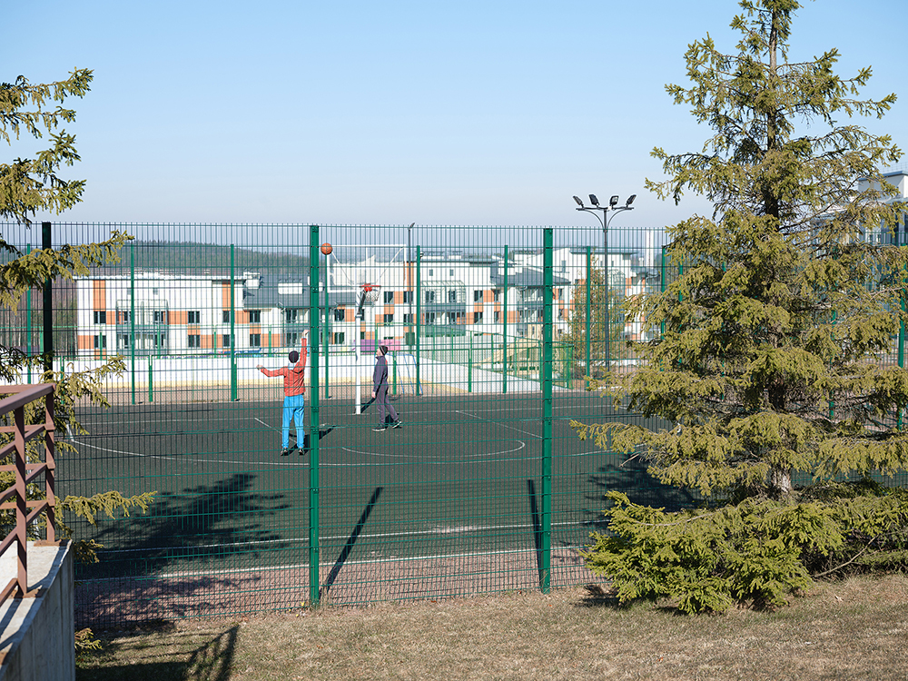 В EcoCity тоже есть всё, чтобы поддерживать себя в форме: пять спортивных площадок, где можно заниматься на турниках и брусьях, 16 гектаров земли для пробежек, пеших и велопрогулок и стадион для игр в футбол, баскетбол и волейбол, где зимой заливают каток.