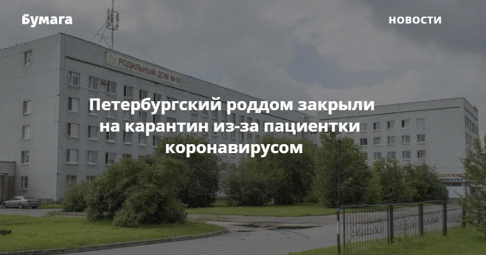 В Петербурге родильный дом № 16 приостановил прием из-за выявленного случая коронавируса у одной из пациенток. Об этом «Бумаге» рассказали в комитете по здравоохранению.