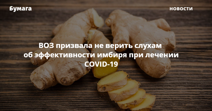 ВОЗ отрицает эффективность имбиря при лечении COVID-19