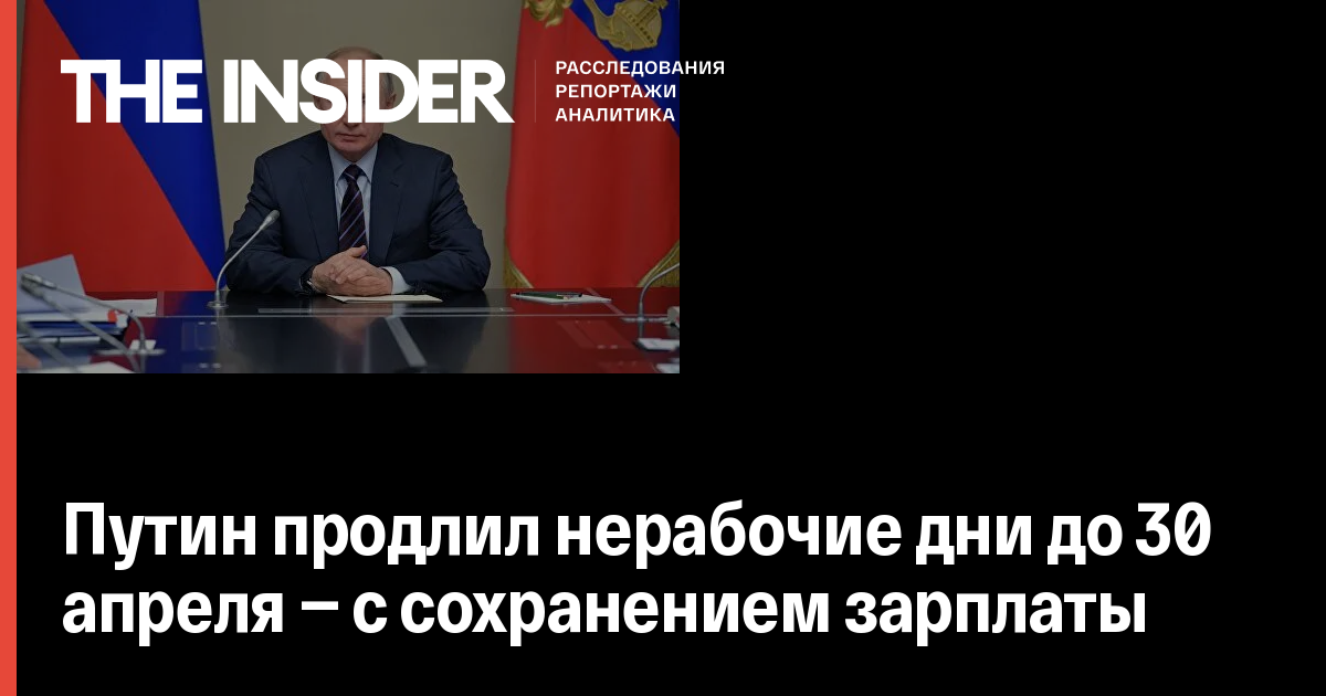 Владимир Путин во время своего обращение продлил режим нерабочих дней до 30 апреля включительно — с сохранением зарплаты.