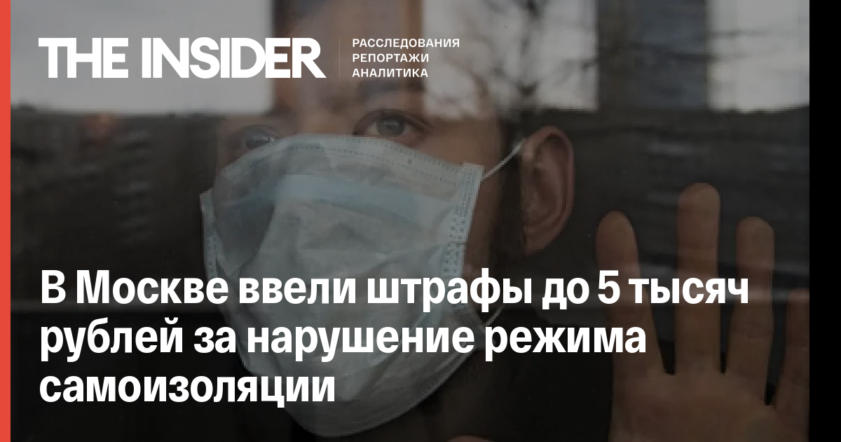 Мэр Москвы Сергей Собянин подписал закон о поправках в столичный КоАП, который подразумевает ввод штрафов в размере 4–5 тысяч рублей за нарушение жителями режима изоляции. Соответствующий документ опубликован на официальном сайте мэра.