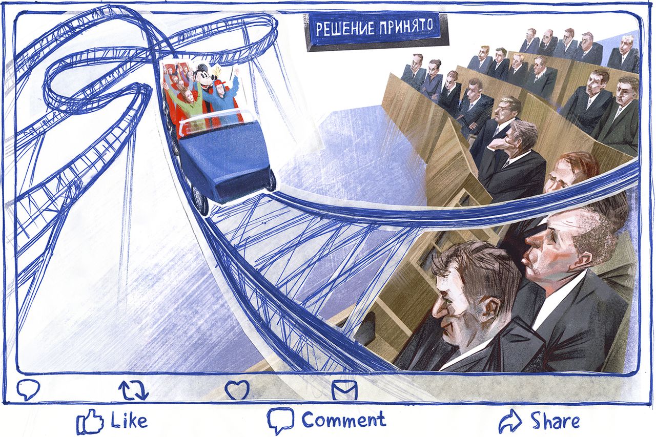 В России ощущения войны ни у кого нет. Есть — нервный смех в Твиттере после того, как Путин заявил о продлении каникул. Шутки про апокалипсис, гречку и про то, что в стране введён режим ХЗ: «ХЗ, что происходит, ХЗ, кто ответственен, ХЗ, когда кончится». Попытки подсчитать, какого именно размаха экономический коллапс ждёт страну после того, как карантин кончится. Про QR-коды для каждого москвича тоже шутят — и кто-то даже упоминает обязательного в таких ситуациях Большого Брата, но в целом меры по борьбе с коронавирусом в стране пока выглядят хаотичными.