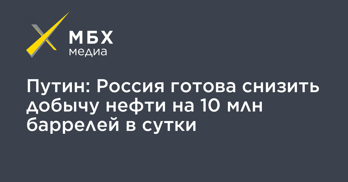 Путин: Россия готова снизить добычу нефти на 10 млн баррелей в сутки