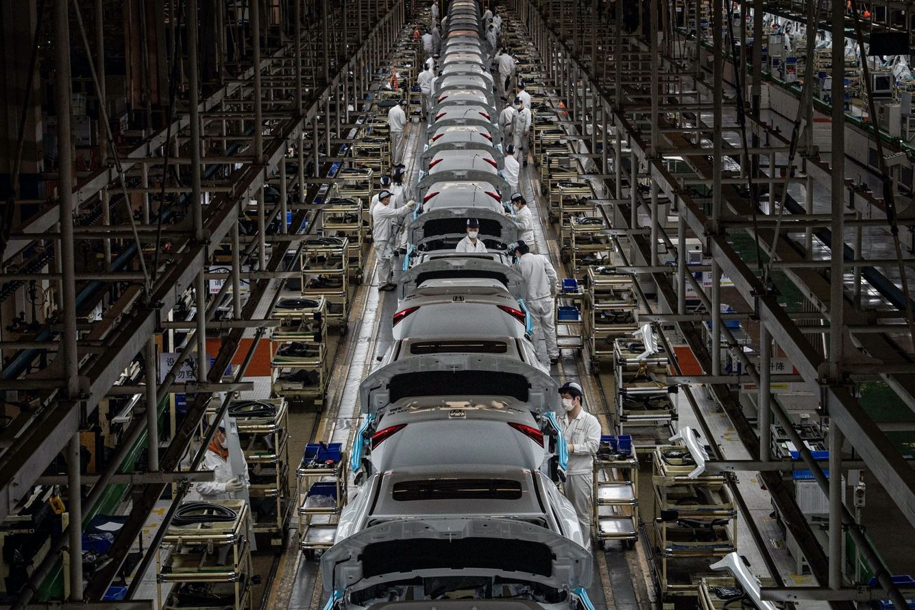 AFP / Scanpix / LETA Рабочие в масках на возобновившем работу автомобильном заводе «Дунфэн» в городе Ухань. 23 марта 2020 года