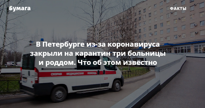 «Бумага» рассказывает, что известно о карантинах в петербургских стационарах.