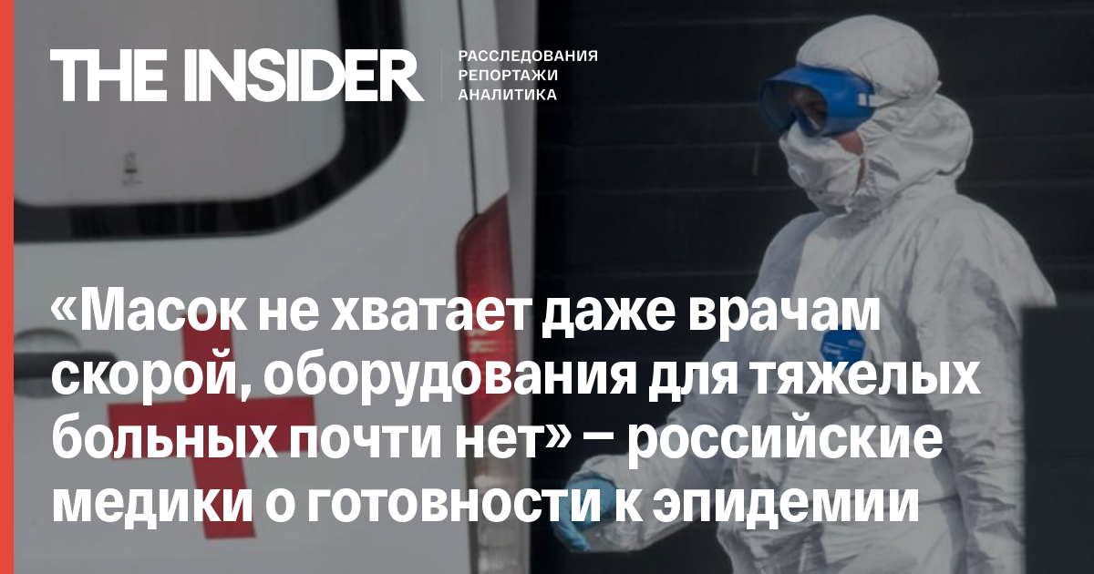 «Масок не хватает даже врачам скорой, оборудования для тяжелых больных почти нет» — российские медики о готовности к эпидемии