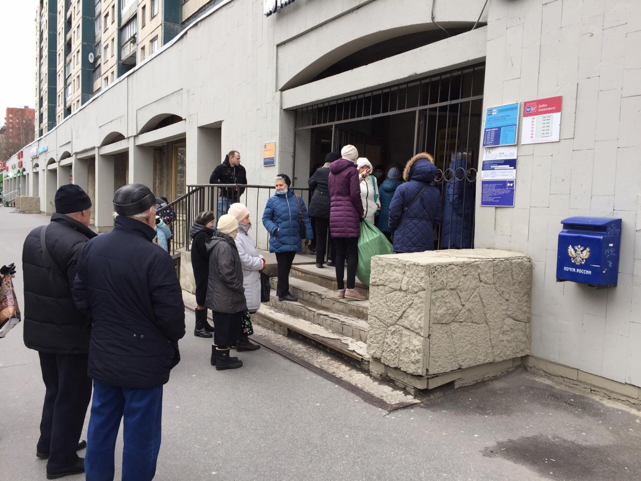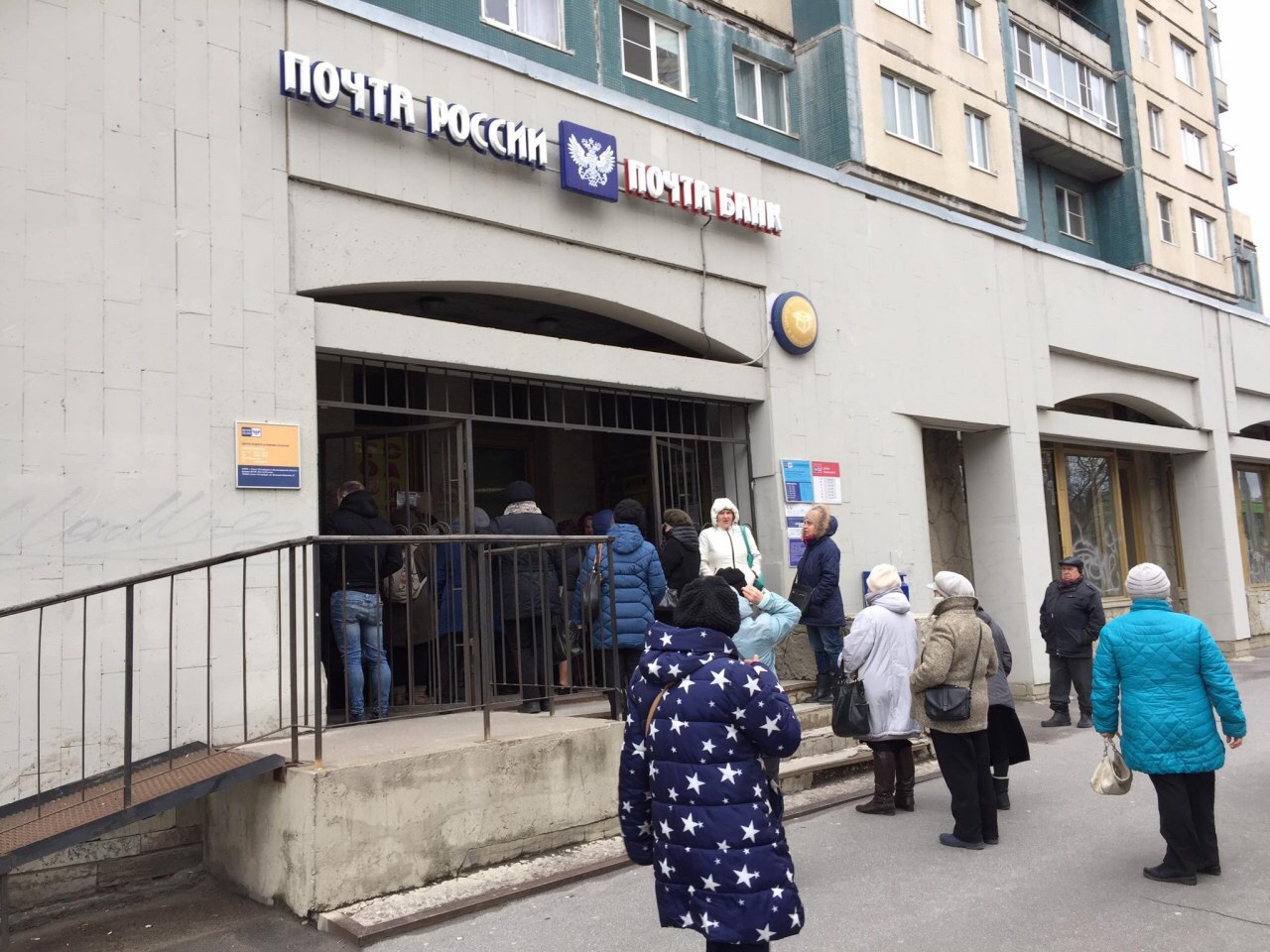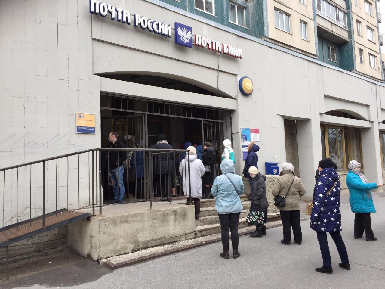 У отделения «Почты России» на проспекте Королева в Приморском районе 3 апреля заметили большую очередь из пенсионеров. Фотографии прислал читатель «Бумаги».