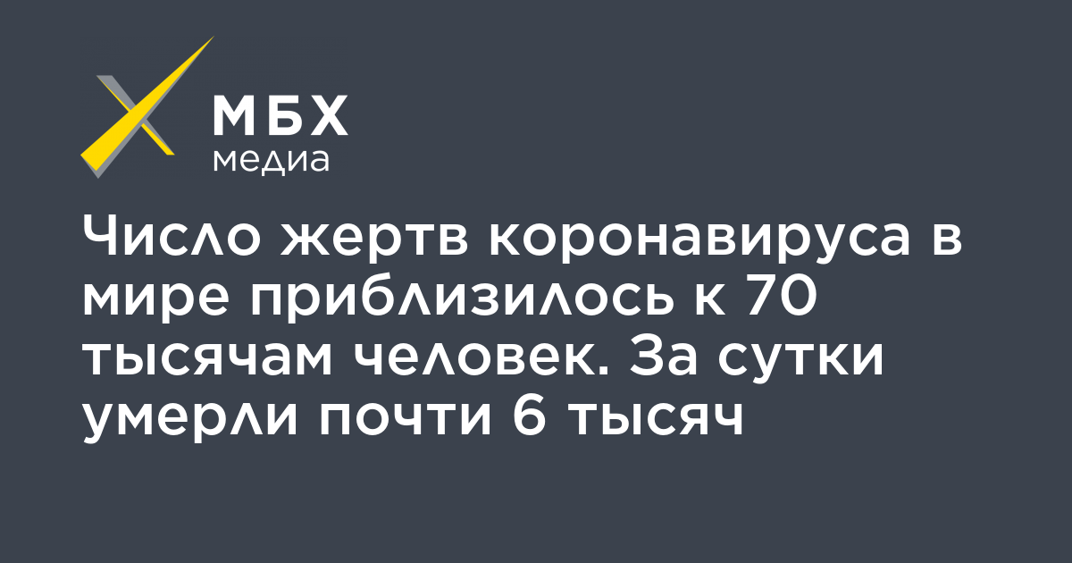 Число жертв коронавируса в мире приблизилось к 70 тысячам человек. За сутки умерли почти 6 тысяч