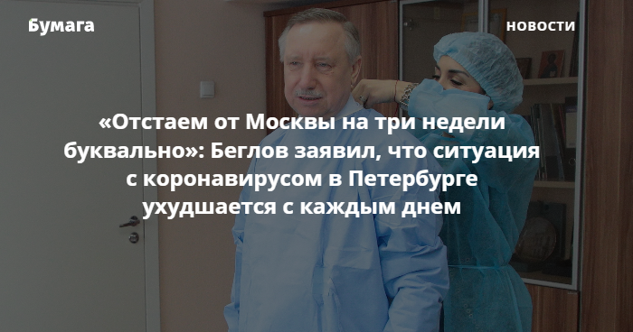 Губернатор Александр Беглов заявил, что ситуация с коронавирусом в Петербурге ухудшается с каждым днем, а город отстает от Москвы на три недели по числу заболевших коронавирусом.
