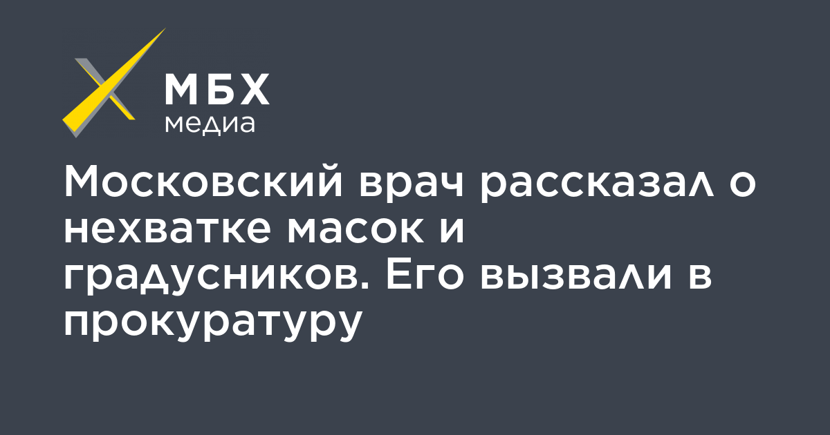 Московский врач рассказал о нехватке масок и градусников. Его вызвали в прокуратуру