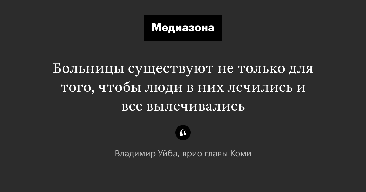 Во время обращения к жителям Коми временно исполняющий обязанности главы региона Владимир Уйба сообщил, что больницы существуют не только для того, чтобы люди в них вылечивались. Запись обращения опубликована в ютуб-канале пресс-службы Уйбы.