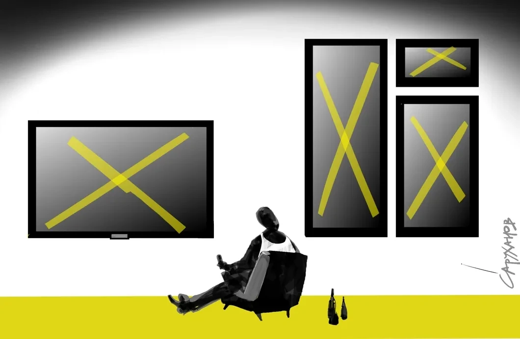 От привычной риторики ненависти на душе стало легко и спокойно, будто вернулся вчерашний день. Вчера было все ясно: вот враги, а вот спасительная вертикаль власти. Сегодня не ясно ничего. Формула Герцена «варварская сбивчивость понятий» никогда еще не была столь актуальной. Телевизор, переживающий ренессанс (на фоне, кстати, внезапно ушедшего в тень YouTube), вещает тремя разными языками. Медики изъясняются обтекаемо, в стилистике мутирующего коронавируса. Власти трубят языком угроз, штрафов, наказаний. Телевизионные толмачи петляют зайцем от истерики к полной растерянности. Рассказы о лечении вируса по фотографии перемежаются триллерами о проникновении заразы через канализацию и вентиляцию. Ирада Зейналова в своей очень авторской программе сообщает число жертв от вируса в России — 40 тысяч человек (на экране за ее спиной значится 45 человек). Кирилл Клейменов упоенно, будто перед ним Иисус Воробьев в обнимку с Федором Смоловым, клеймит лимоны, имбирь и чеснок.