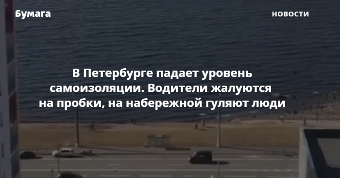 Днем 7 апреля уровень самоизоляции, который оценивает примерное количество людей на улице, снизился в Петербурге. Водители с утра жаловались на пробки, а днем петербуржцы заметили гуляющих по набережной людей.