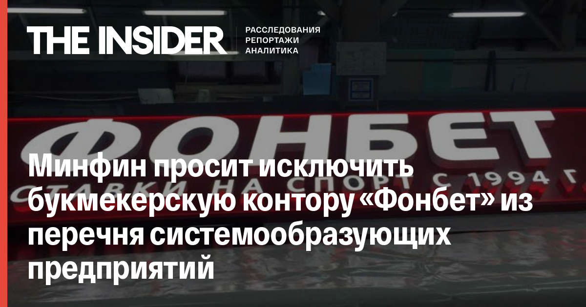 Минфин просит исключить букмекерскую контору «Фонбет» из перечня системообразующих предприятий