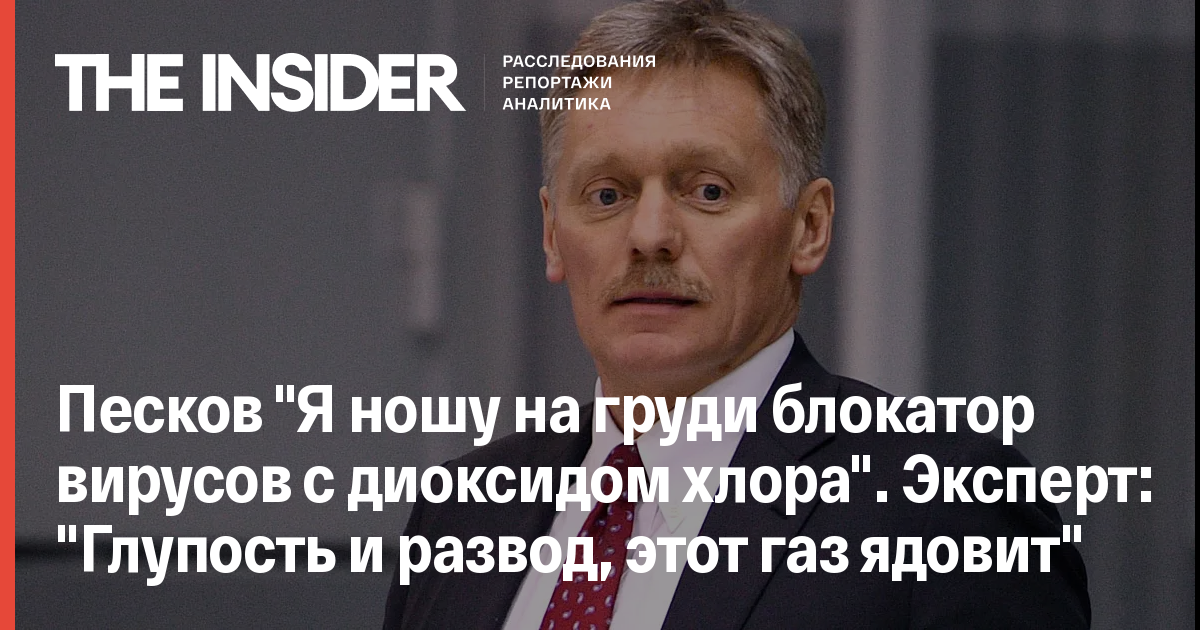 Песков "Я ношу на груди блокатор вирусов с диоксидом хлора". Эксперт: "Глупость и развод, этот газ ядовит"
