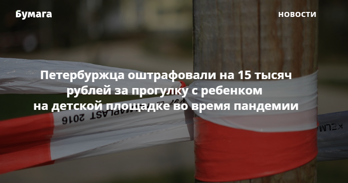 ТАСС отмечает, что это первый штраф в Петербурге за посещение детской площадки.