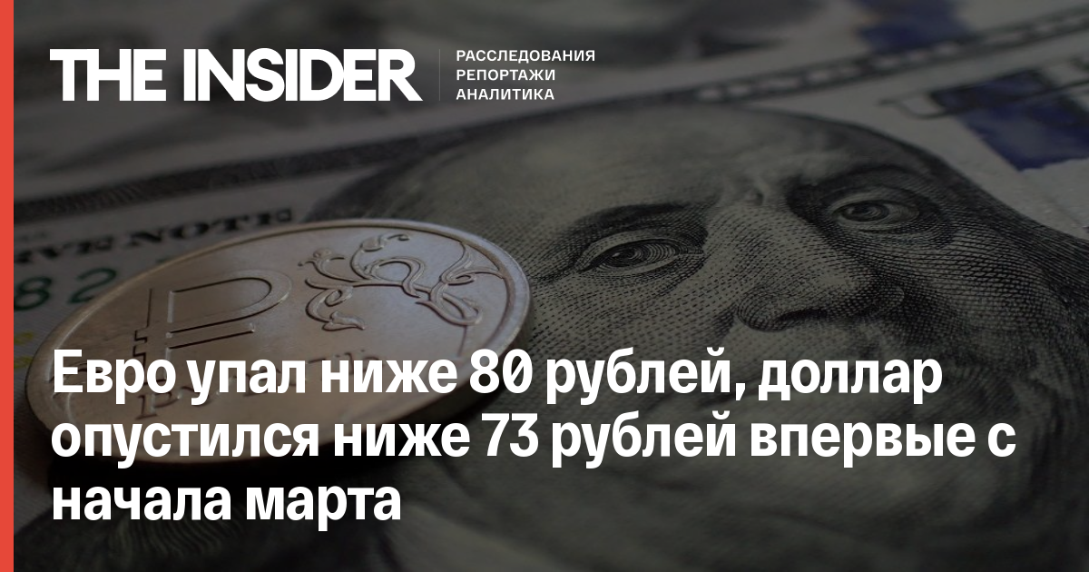 Евро упал ниже 80 рублей, доллар опустился ниже 73 рублей впервые с начала марта