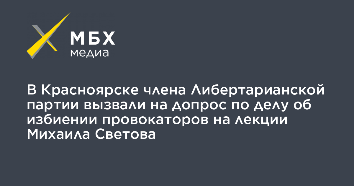 В Красноярске члена Либертарианской партии Станислава Рудковского вызвали в отдел полиции №1 по делу об избиении двух провокаторов на лекции Михаила Светова, которая прошла в октябре 2019 года. Об этом Рудковский сообщил «МБХ медиа».