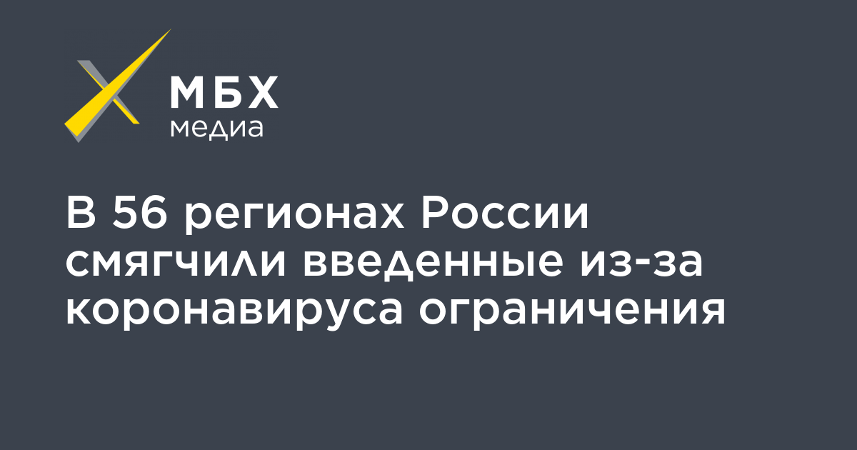 В 56 из 85 регионах России смягчили ограничения, которые были введены для предотвращения распространения коронавируса, сообщает ТАСС.