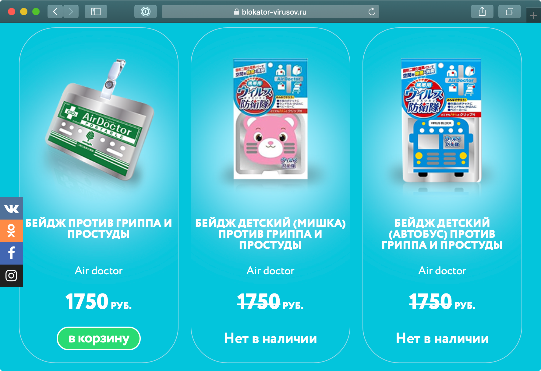At Ozon.ru, Air Doctor is described as “a new achievement by Japanese scientists.” Meanwhile, the website blokator-virusov.ru says the company’s products are “manufactured only in Japan” and warns that generic, lower-quality imitations from other countries do not offer the same lasting effects.