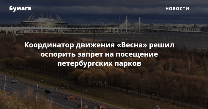 Координатор движения «Весна» Богдан Литвин подал иск к правительству Петербурга, чтобы оспорить часть пунктов постановления, принятого властями из-за ситуации с коронавирусом. Об этом сообщает объединенная пресс-служба судов города.