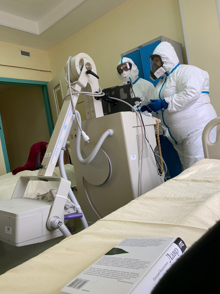 В Боткинской больнице запрещено самостоятельно покидать бокс — двери открываются магнитным ключом, который есть только у сотрудников стационара. Даже аппарат для рентгена привозят прямо в палату.