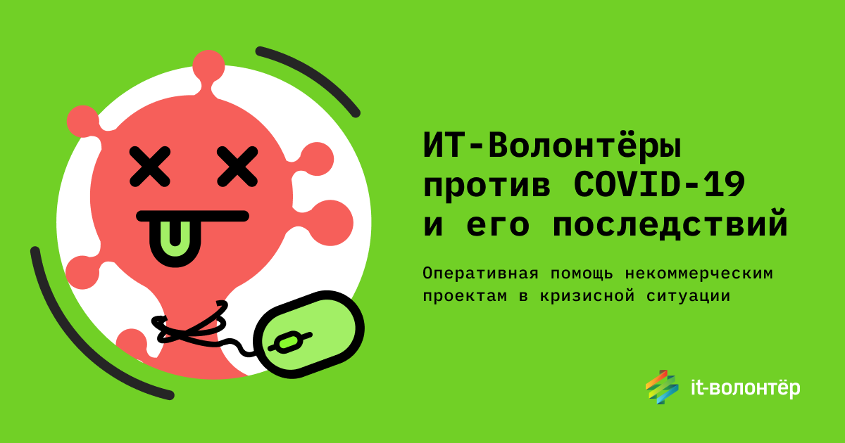 Сообщество IT-волонтеров переходит на оперативный режим работы и объединяется в группу «IT-волонтеры против COVID-19» для быстрой помощи некоммерческим проектам и низовым инициативам.