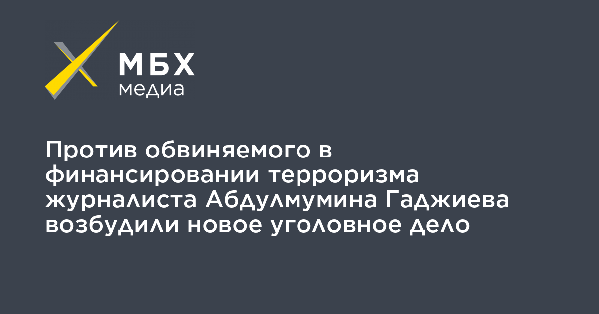 Против журналиста газеты «Черновик» Абдулмумина Гаджиева, обвиняемого в финансировании терроризма, возбуждено новое уголовное дело об участии в экстремистской организации (часть 2 статьи 282.2). Об этом сообщил «МБХ медиа» адвокат Арсен Шабанов.