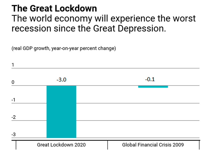 "Вследствие пандемии глобальная экономика, в соответствии с прогнозом, в 2020 году резко сократится - на 3%, что намного хуже, чем в период финансового кризиса 2008-2009 годов. При таком базовом сценарии, предполагающем, что пандемия завершится во второй половине 2020 года и от усилий по сдерживанию можно будет постепенно отказываться" - прогнозирует МВФ.