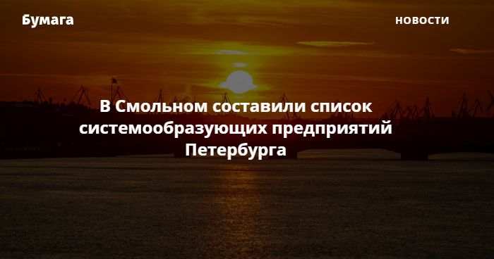 Власти Петербурга опубликовали список системообразующих предприятий города. Об этом сообщает пресс-служба Смольного.