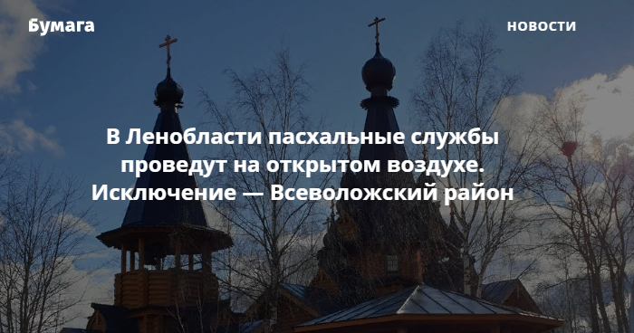 При этом во Всеволожском районе все храмы будут закрыты до 30 апреля, а прихожан не пустят даже на их территорию. Как заявил глава администрации Андрей Низовский, такое решение приняли из-за того, что велика вероятность приезда большого количества людей из города. Это может стать благоприятной почвой для распространения вируса, считает Низовский.